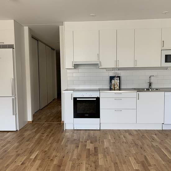 Fastigheten är byggd 2023 och det har bott hyresgäster innan dig i denna bostad. Om Bostaden Bostaden har vitmålade väggar, parkettgolv av ek och fönsterbänkar i granit. I hallen finns en mindre yta med klinkergolv. Köket har vit skåpsinredning med kakel som stänkskydd och laminatbänkskiva. Köket är utrustat med spis med induktionshäll, varmluftsugn, kyl och frys alternativt en kyl/frys, diskmaskin samt inbyggd mikrovågsugn. Det finns också avfallskvarn. Badrummet är helkaklat och har klinkergolv. Dusch med duschväggar i klarglas, spegel...