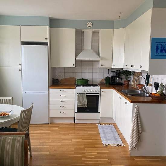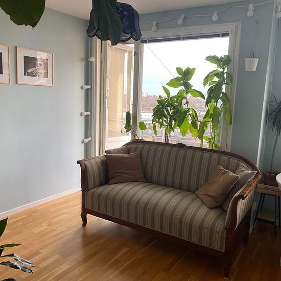 Hejsan, Lägenheten ligger precis vid Hagsätra torg och är en 2:a på 33 kvadratmeter och ligger på 7:e våningen med en fin utsikt från balkongen mot centrala delarna av Stockholm (man ser Globen bland annat). Lägenheten hyrs ut möblerad (TV och blå byrå finns dock ej kvar), tillgång till förråd och tvättstuga finns. Hyran är 11 000 kr per månad och då ingår internet ink. router, el, värme och gas till gasspisen. Deposition är på 5000 kr. Ni behöver ha en vanlig hemförsäkring som täcker er, men bostaden i sig är försäkrad vid eventuella oly...