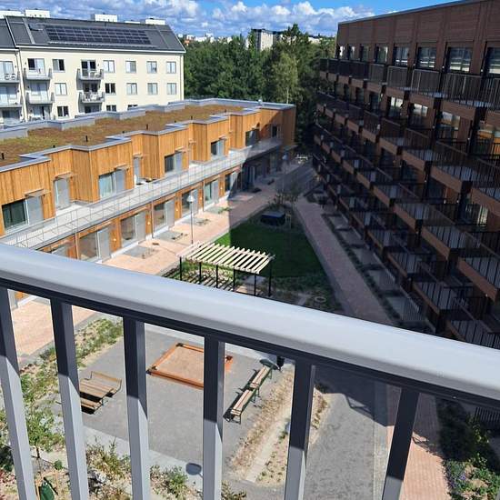 Högst upp i fastigheten. Köken är välutrustade med vita eleganta luckor från HTH. På golvet ligger en vackerekparkett. Väggar, tak och lister ar vitmålade. Badrummen ar helkaklade med stora vita blanka plattor på väggarna och beige klinker på golvet. De är även utrustade med duschvägg i klarglas, spegelskåp med belysning, kromad handdukstork samt krokar och lampa i taket. Badrummen är också förberedda för tvättmaskin och torktumlare. Lägenheter har en terrass. Fastigheten ar rökfri och har en stor grön innergård med gemensam odling,...