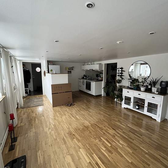 Mysig lägenhet med 2 sovrum i markplan (suterränghus) med egen uteplats och entré. Väldigt bra och lugnt läge på Norrmalm med närhet till såväl högskolan som centrum och knalleland mm. Lägenheten är i bra skick med en bodega. Dvs lägenheten har 2 våningar. I fastigheten finns fiberanslutning från Telia. Gemensam tvättstuga. Cykelförråd finns utomhus. Separat elmätning (Hyresgäst har eget abonnemang). Vatten och värme ingår i hyran.