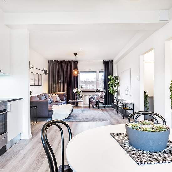 **Hyresrabatt – År 1: 1500kr/mån, år 2: 1000kr/mån, år 3: 500kr/mån** Välkommen till en renoverad 2 RoK med genomgående hög och modern standard. Lägenheten är nyrenoverad våren 2021. HALL Välkomnade hall med vita väggar och golv i laminat/ek. KÖK Nytt och modernt kök med rostfria vitvaror, antracitgråa bänkskivor i komposit/granit och glaskeramikhäll. Luckorna är vita med stilrena stålhandtag. Köket är utrustat med kyl/frys, ugn/häll, diskmaskin och integrerad mikrovågsugn samt fläkt. BADRUM Lägenheten har ett ljust helkaklat badrum med ...