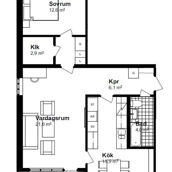 2 room apartment in Boxholm
