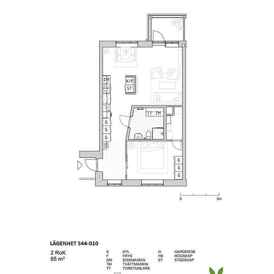 2 room apartment in Broby