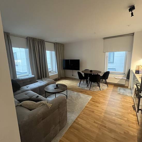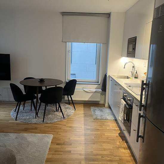Welcome to a sleek and modern two-room apartment of 43 sqm in a new development in popular Mariehäll. The apartment is rented fully furnished and offers an open and pleasant layout with smart spaces and high standards. The separate bedroom has a walk-in closet as well as additional wardrobes, providing very good storage possibilities. The kitchen and living room are in an open-plan layout. The location is very good, within walking distance to Sundbyberg center and Sundbyberg station with commuter trains, subway, light rail and buses. Bromm...