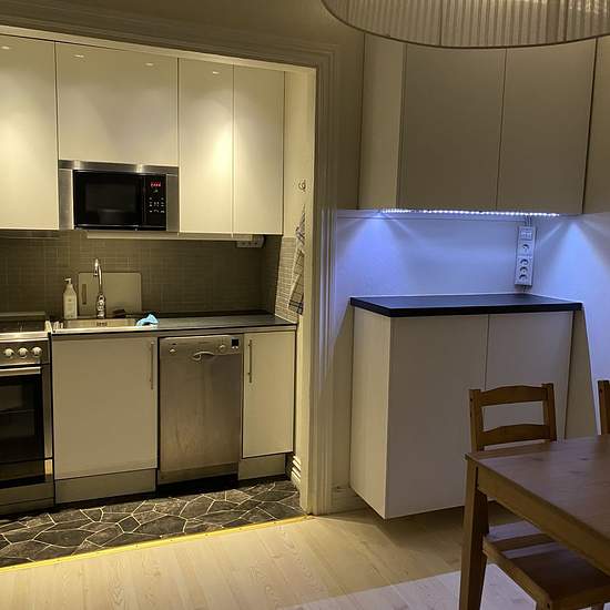 Rent my nice apartment of about 35 sqm in my villa with a private entrance. I rent it furnished or unfurnished. Small hallway with wardrobe for outerwear and shoes. Open floor plan living room and kitchenette. Stove with hob and convection oven. Dishwasher and fridge/freezer. TV. Good storage in the kitchen. One bedroom and WC and shower and own washing machine. Wi-Fi. Rent 10,500 SEK per month. Deposit one month’s rent. Advance rent. No pets and no smoking indoors. Permanent employment and references desired. Service fee for tenan...