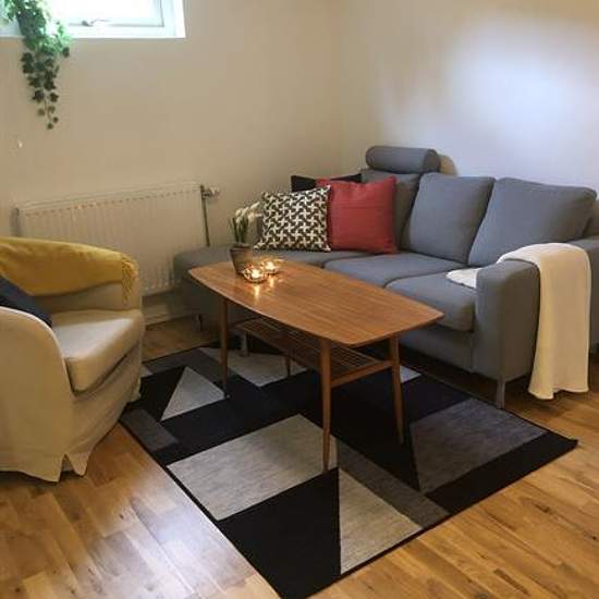 Newly renovated basement apartment in a villa in Nora, Danderyd for rent from January 1st until further notice. 2 rooms and kitchen (2-room apartment), 47 m². Bedroom, living room, bathroom and kitchen, fully furnished. The apartment is perfect for 1–2 people. The location is great, close to parks and greenery, Nora square and Mörby Centrum! Internet included, electricity is extra. 15–20 minutes' walk to Mörby Centrum where there is a subway (15 minutes to T‑Centralen). Pleasant restaurants, cafés, shops and gyms. The minimum rental period...