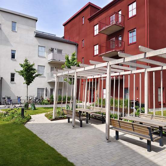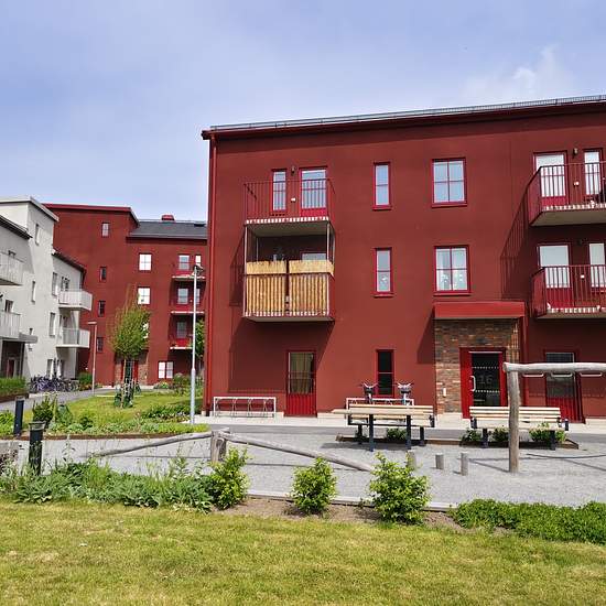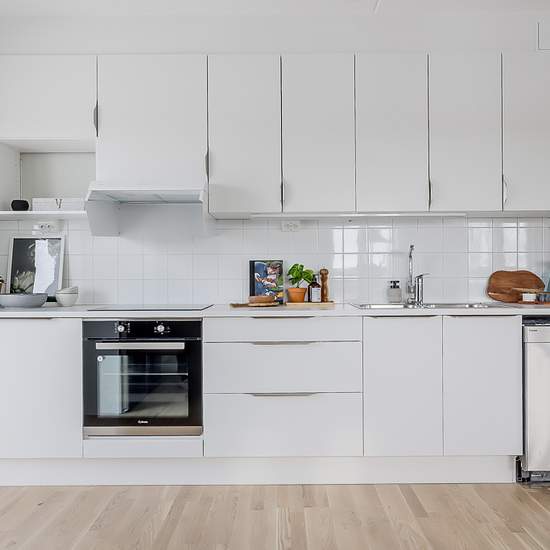 Materialen i lägenheterna har valts ut för att vara hållbara, funktionella och lättskötta. Och för att du lätt ska kunna känna dig hemma. Genomgående ekparkett och ljusa väggar är klassiskt och funkar med nästan allt. Köket har vita, släta luckor och utrustat med glaskeramikhäll, varmluftsugn, kyl och frys alternativt kombinerad kyl/frys och diskmaskin. Det är även förberett för mikrovågsugn. I de helkaklade badrummen finns tvättmaskin och torktumlare alternativt kombimaskin. Alla lägenheter har balkong (vanlig, fransk eller spansk) alternat...
