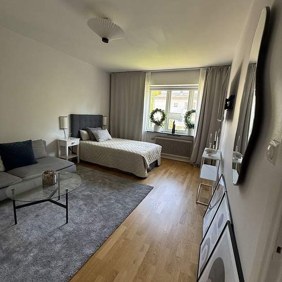 Möjligt att hyra depositionsfritt genom Samtrygg. Månadskostnad: 9200 kr. ________________________________________________________________ Snabbast bokar du visning genom att följa denna länk till Samtrygg: Här hittar du även fler bilder och mer info. ________________________________________________________________ Central lägenhet med 1,5 rum i välskött förening med fönster mot lugn bakgård. Separat matrum/sovrum. Gångavstånd till centrum, bussar och till Enköpings station med kort pendelavstånd till Stockholms central. This accom...