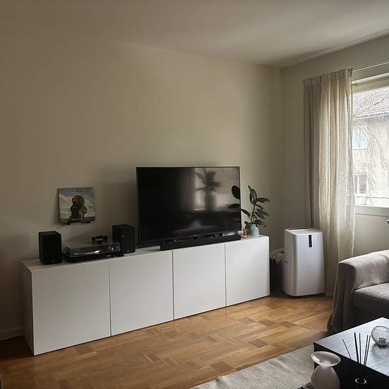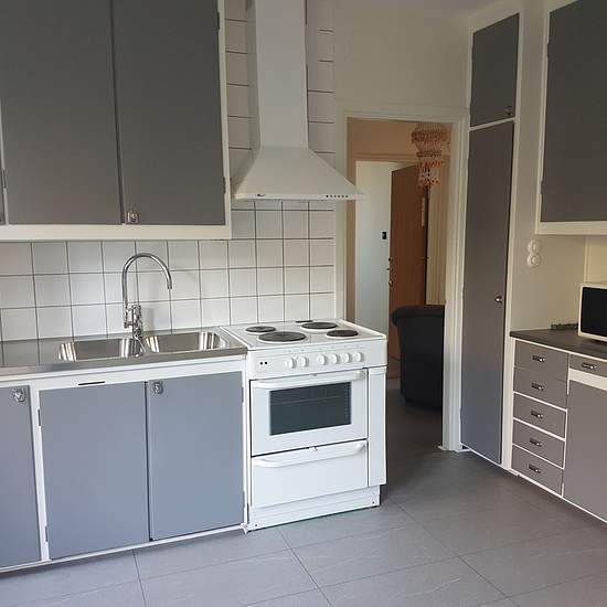 Bright, large and lovely functionalist-style 2-room apartment centrally located in Gubbängen. The large living room and spacious bedroom, with several wardrobes and big windows, offer great possibilities for different furniture layouts and space for a pleasant, light home workspace. The kitchen is also large, with dining space for many and plenty of storage and work surfaces. Perfect for those who love cooking and socializing around weekend dinners. From the kitchen you also have a backdrop of lush greenery through the large windows. The apa...