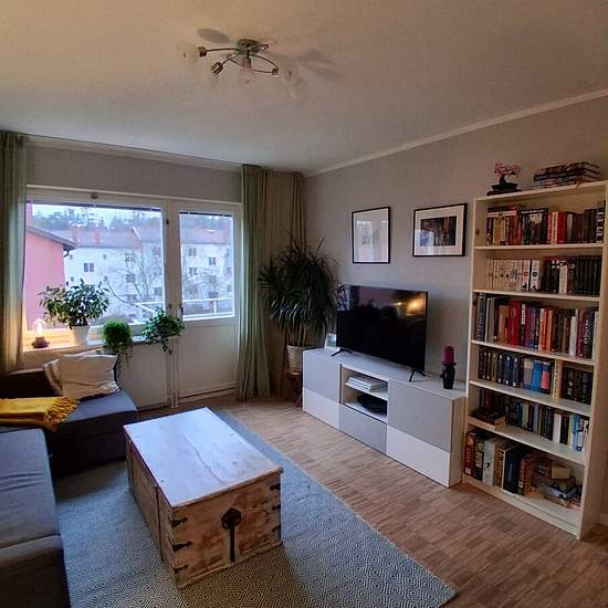 Möjligt att hyra depositionsfritt genom Samtrygg. Månadskostnad: 13800 kr. ________________________________________________________________ Snabbast bokar du visning genom att följa denna länk till Samtrygg: Här hittar du även fler bilder och mer info. ________________________________________________________________ Mysig 2:A i natursköna Gubbängen. Högst upp i huset med minimal insyn, balkong i väster mot stor grön innergård med grillmöjligheter. Lugnt, tyst område, endast 2 min från gubbängens centrum med tunnelbana, mataffär, bibli...
