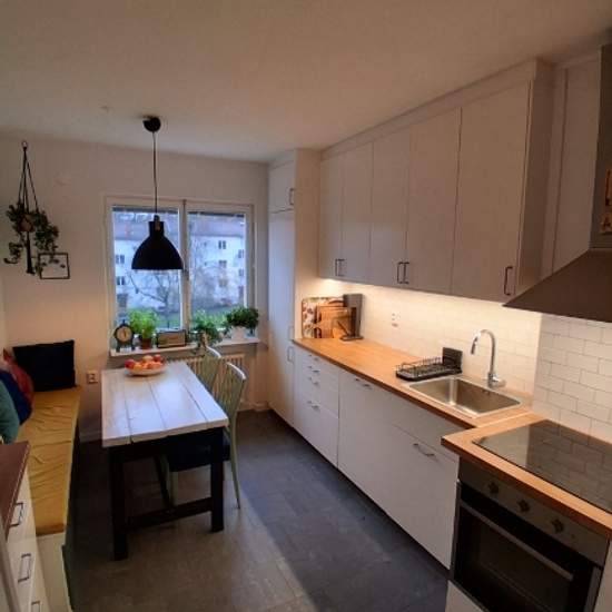 Mysig 2:A i natursköna Gubbängen. Högst upp i huset med minimal insyn, balkong i väster mot stor grön innergård med grillmöjligheter. Lugnt, tyst område, endast 2 min från gubbängens centrum med tunnelbana, mataffär, bibliotek, apotek, gym och restauranger. 10 min restid till Södermalm och 18 min till T centralen. 2 min till Farsta centrum. Optimal planlösning för boende både som par och ensamboende. Gott om förvaring. Modernt kök och badrum med diskmaskin och tvättmaskin. Tvättstuga, grovsoprum, snickarverkstad i föreningen. Gratis park...