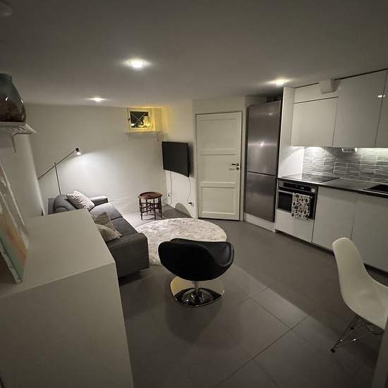 Nybyggd lägenhet i källaren på villa med egen ingång. Lägenhet på knappt 30 m2 och består av kök/vardagsrum med matplats, soffa mm samt ett separat sovrum med förvaring för kläder. Det finns av avskiljd möblerad uteplats och en liten trädgård. Kommunikationerna är mycket goda och det är endast 300 m till bussen och max 10 min promenad till Enskede gård alt Sockenplans tunnelbanestationer. Med cykel är man på söder på ca 10 min. Serviceavgift för hyresgäst: 561