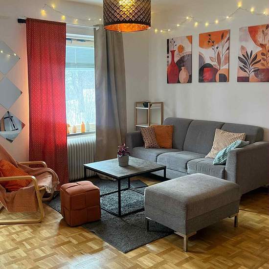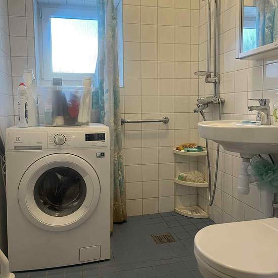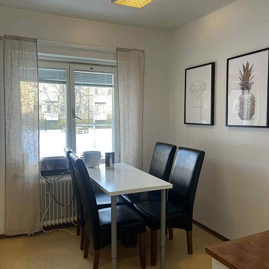 Large spacious 2-room apartment of 60 sqm. Large airy living room with balcony. Bathroom with washing machine. Fully equipped kitchen. Has two TVs, one in the bedroom and one in the living room; the one in the living room has a basic TV package. Quiet area with a small centre with an ICA shop, 4 restaurants, an STC gym, etc. Nice walking paths in the local area. The apartment is 5 minutes from the metro; it takes 7 minutes to Gullmarsplan and 16 minutes to T-Centralen. Service fee for tenant: 465