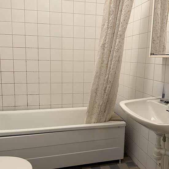 Very pleasant 1930s apartment in a good central location. The entire apartment has light-painted walls. Large welcoming hallway with light walls and original parquet; there is also a walk-in closet in the hall. Functional kitchen with provision for a dishwasher. There is a newer carpet here. Smaller bedroom but with a small walk-in closet. The living room is large and spacious and also has parquet flooring. Bathroom with bathtub. The apartment has a security door.