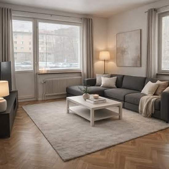 SÖDER: Affordable 2-room apartment, 44 sqm, Haleniigatan 3B (0.5 floor) Bright and pleasant 2-room apartment in the lovely Söder. The apartment has a large living room and a large bedroom, only a small kitchenette with two hotplates and a small sink. Also a fridge with a freezer compartment. Juliet balcony and a large bedroom with wardrobe space. Quiet building with friendly neighbors. Move-in: May 1st Rent: 5,702 SEK/month (2025) Size: 2 rooms and kitchen, 44 sqm Parking is available both in a heated garage and in surface parking. ...