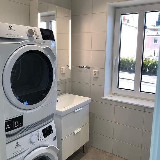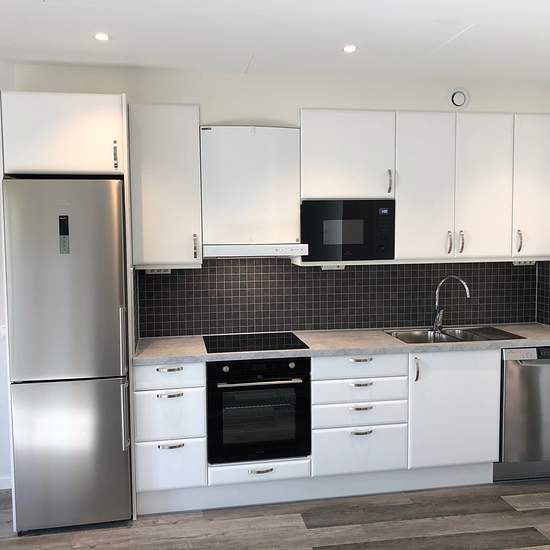Newer senior apartment. Very nice one-bedroom with high standard and tasteful color choices. The property is located in the center of Falköping. This apartment is one floor up with a view of the sunset through a French balcony. The apartment has an open plan between the kitchen and living room. The kitchen is a Tidakök and is equipped with, among other things, an induction hob, microwave, dishwasher as well as fridge and freezer. The bathroom is, among other things, equipped with ceiling spotlights, its own washing machine, a heat-pump tumbl...
