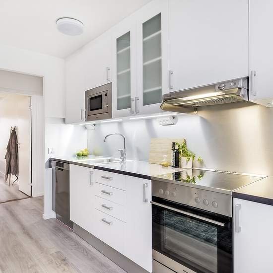 Välkommen till en renoverad 2 RoK med genomgående hög och modern standard. HALL Välkomnande hall med svart entrébeläggning, vita väggar och golv i trälaminat KÖK Modernt kök med rostfria vitvaror, antracitgråa bänkskivor och glaskeramikhäll. Luckorna är vita med stilrena stålhandtag. Köket är utrustat med kyl/frys, ugn/häll, fläkt samt diskmaskin och integrerad mikrovågsugn. BADRUM Lägenheten har ett, ljust helkaklat badrum utrustat med dusch, handdukstork, golvvärme, handfat med kommod samt spegel med belysning. I badrummet finns även tv...