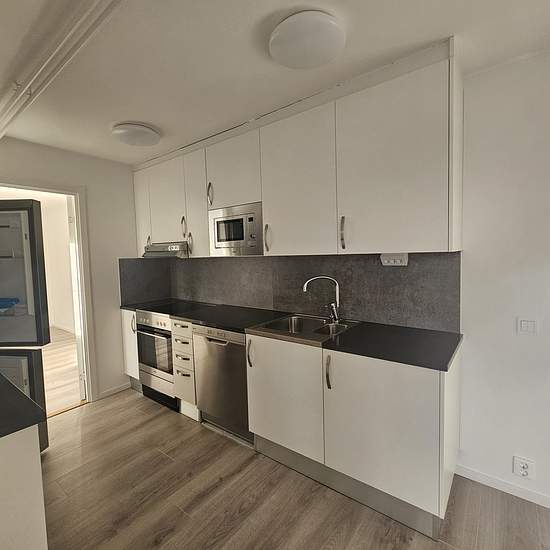 During January we have a unique offer on this apartment! If you sign a lease in January you get free rent for the whole of February and can move in peacefully. Welcome to a renovated 2-room apartment with a consistently high, modern standard. HALL Welcoming hall with black entrance flooring, white walls and wood laminate flooring - there is also a walk-in closet. KITCHEN Modern kitchen with stainless-steel appliances, anthracite grey countertops and a glass-ceramic hob. The cupboard doors are white with sleek steel handles. The kitchen is...