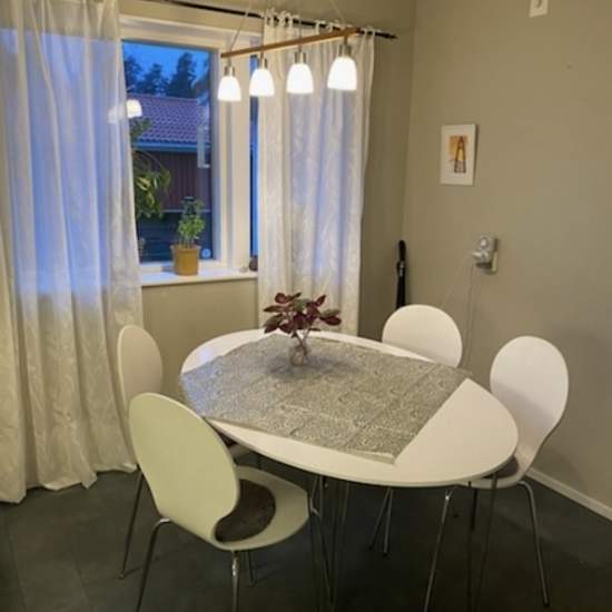 The townhouse is rented unfurnished inside, but outdoor furniture is included on both the front and back yards. All operating costs are included in the rent, which makes the accommodation convenient and hassle-free. A garage space is included, and the residence is equipped with fast fiber broadband (1000/1000 Mbps). An electric charger is included in the garage. Connection via an app. Close to lakes; 10 minutes to the town center. There are also trains that go to Floda in 24 minutes from Gothenburg and Alingsås. Close to the nature reserve.