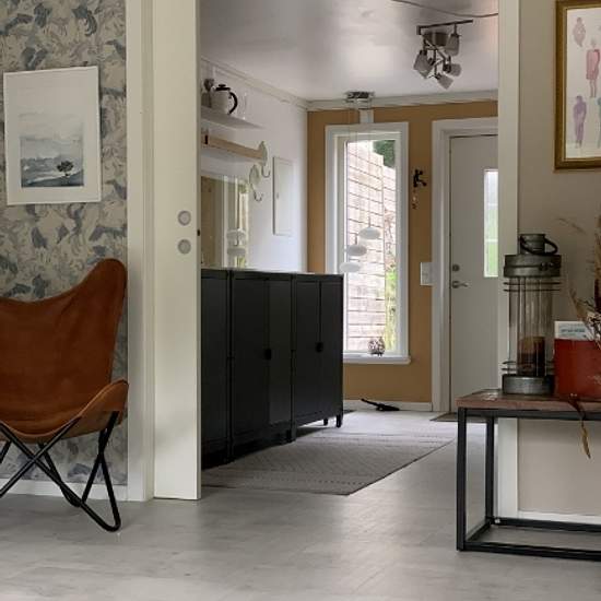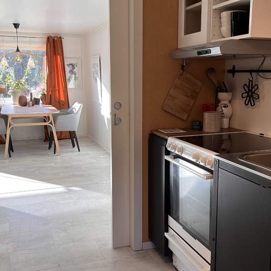 Uthyrningsdel på 52kvm med enkelt kök och badrum samt egen ingång, sovalkov med 140 säng och stor soffa. Varmluftspump vilket gör att värmen går att reglera. Enkelt kök och passande för två personer.
