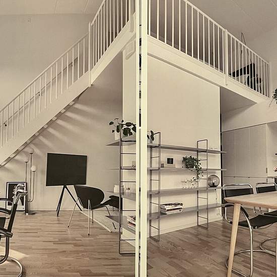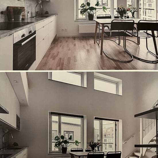 Etagelägenhet (2 plan) på våning 6, med över 5 meter i takhöjd. Högst upp i huset med rymlig balkong och eftermiddags- och kvällssol. Tvättmaskin & torktumlare finns i lägenheten men det finns också en gemensam tvättstuga. Stor gemensam takterrass på samma våningsplan, med storbildsskärm och eget pentry. ICA Maxi på andra sidan gatan och Willys runt hörnet. Spårvagn och bussar går precis utanför. Flera trevliga restauranger i området. Gym runt hörnet. Garage, cykelparkering och återvinningscentral finns under fastigheten. Serviceavgift för h...