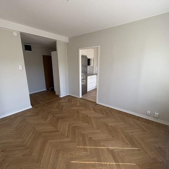 Totalrenoverad funkislägenhet om 2 rum och kök. Nytt kök från HTH, vitvaror i rostfritt utförande. Spis med induktionshäll. Genomgående parkettgolv. Generös förvaring i form av garderober samt en klädkammare. Helkaklat badrum med el-värmegolv, duschväggar av glas, kommod under handfat och eluppvärmd handdukstork. Planritningen kan innehålla avvikelser från verkligheten. En smakfullt renoverad lägenhet står redo för en ny hyresgäst.