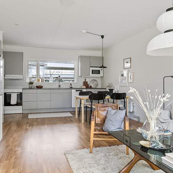 Välplanerad och rymlig tvåa belägen högst upp i huset med fint ljusinsläpp från tre väderstreck. Lägenheten färdigställdes 2019 och har genomgående modern standard. I hallen ligger klinkergolv och här finns en praktisk skjutdörrsgarderob. Övriga rum har ekparkett. Köket är fullt utrustat med diskmaskin och mikrovågsugn. Badrummet är helkaklat och erbjuder golvvärme, duschväggar, handfat med kommod samt handdukstork. Här finns även en tvättpelare med tvättmaskin och torktumlare. Lägenheten har ett rymligt sovrum med anslutande klädkammare. Fr...