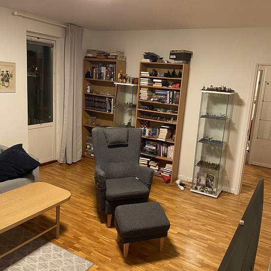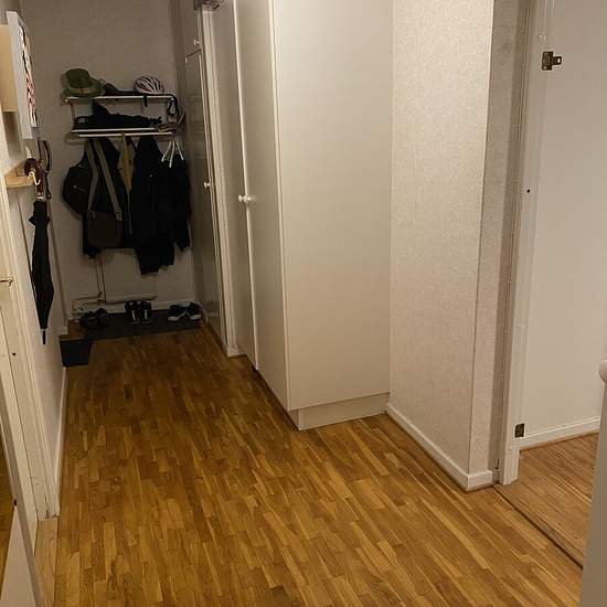 My girlfriend and I are going to try living together, so I plan to rent out my apartment for a year. The apartment is located near a bus stop (Bjurslätts torg) and you are 15 minutes from the city center by bus 25. The apartment is close to Slätta Damm with its nice natural area, and also to the large football field outside where you can play ball games. The entrance leads into the hallway. Straight ahead is the bathroom. The first right leads to the kitchen and the second right leads to the bedroom. To the left is the living room. Service...