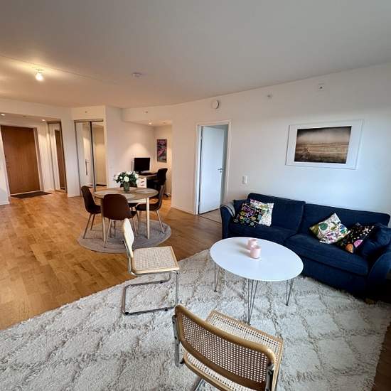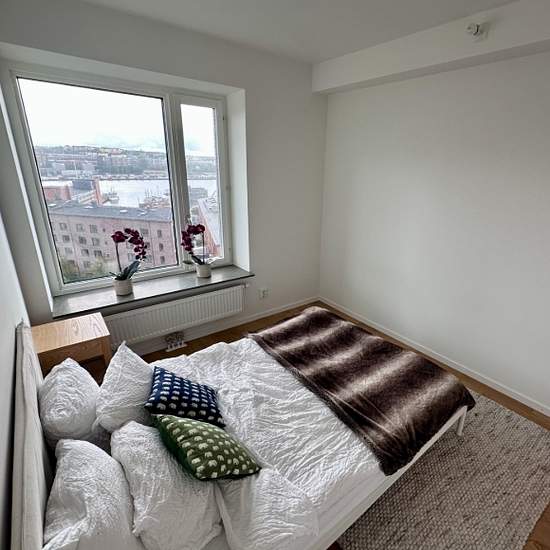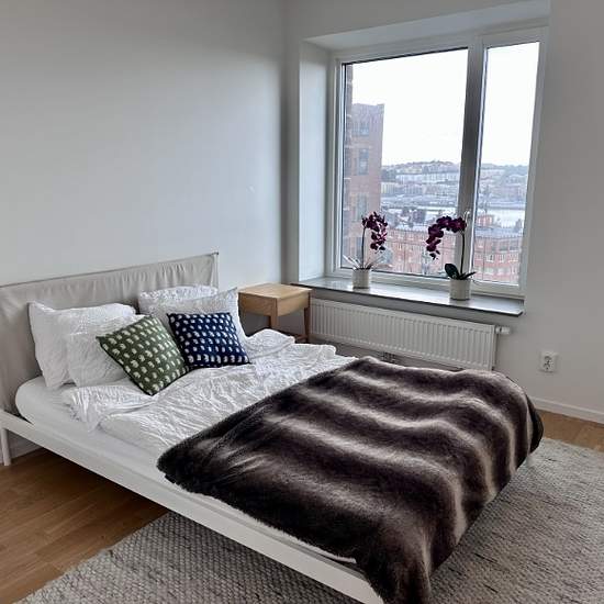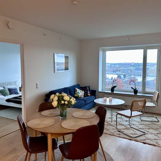 The apartment is a newly built one-bedroom apartment of 53 sqm with a large open-plan layout, a bedroom and a bathroom. With its large panoramic view over the river, the apartment gets plenty of sun. It is furnished with basic furniture such as a bed, sofa, table and chairs and has a combined washing machine and dryer. The apartment is located in Eriksberg where you can easily get into the city center with Västtrafik. The nearest bus stop is 30 m from the main entrance; alternatively the ferry terminal is 150 m away. In the same building as...