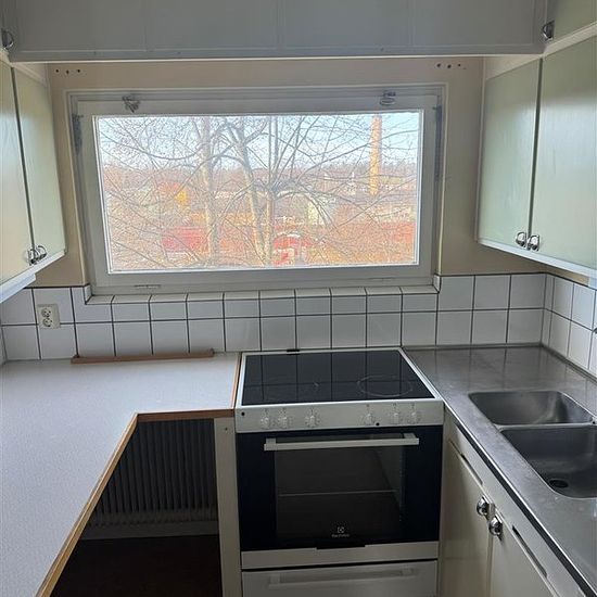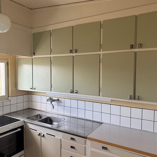Welcome to a bright and spacious apartment designed by architect Ralph Erskine. The color scheme, form and details are well preserved, with a layout that creates an airy and pleasant atmosphere. The living room is generously proportioned with large windows and a French balcony. There is plenty of space for a seating area, a dining area and social zones. The kitchen is functionally planned with good work surfaces, plenty of storage and windows that let in lovely natural light.