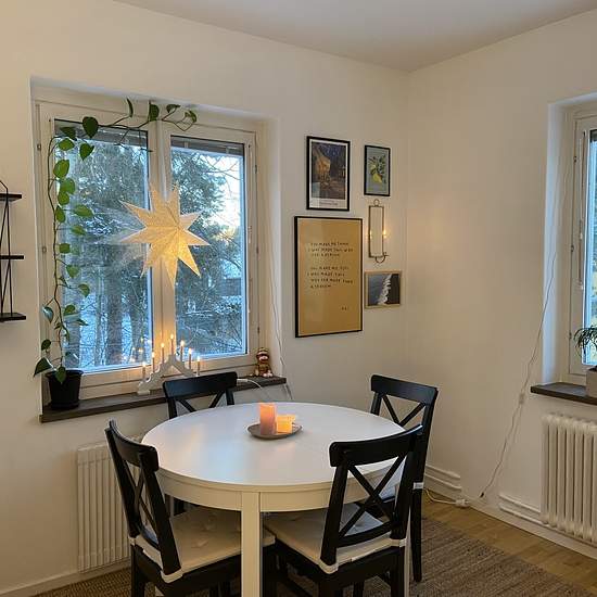 I'm renting out a two-room apartment in Telefonplan, 50 sqm. Furnished. There is a dishwasher, washing machine and tumble dryer. Rent: 13,500 SEK/month. Electricity costs are additional (usually a few hundred SEK/month). Second floor (no elevator). Small balcony with access from the living room. A few minutes' walk to the subway and the grocery store. Cafés and restaurants within walking distance. Cozy and quiet area. Service fee for tenant: 773 SEK