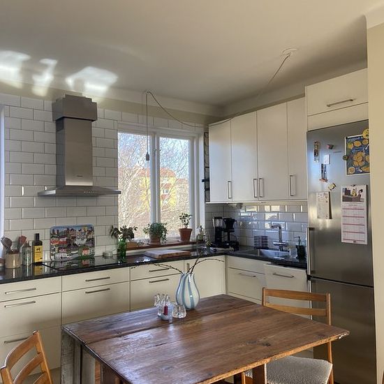 Bright and open apartment with windows facing three directions, perfectly located within walking distance to Telefonplan, Midsommarkransen, and Aspudden subway stations. The rent includes both electricity and broadband. You also get access to a shared storage room, the option to book a large laundry room, four guest apartments, and a party venue. The contract is signed for one year at a time with the possibility of extension. Service fee for tenant: 1071