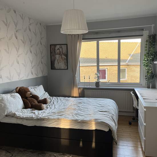 Super cozy apartment on the top floor of a multi-family building with a balcony. Approx. 700 m to the city, bus station right outside the door. Recycling station right by the house. Garden with a patio, street parking available outside—both paid and free. Service fee for tenant: 361