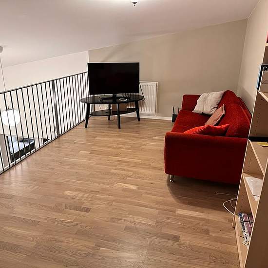 The biggest appartment in this Brf. Very unique 2-story appartment on the top floor. No limit on how long it can be rented out. Rent for as long as you want with 3 month cancelation. Looking for long term residents. Calm area close to nature and lake Mälaren. For all conveniences you Åkermyntan Centrum just around the corner with gym, stores, hairdresser, etc. Bus stop just outside the appartment at Växthusvägen, which takes you to Barkarby station or Vällingby station in less than 10 minutes. Serviceavgift för hyresgäst: 728