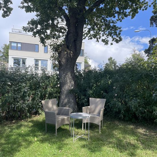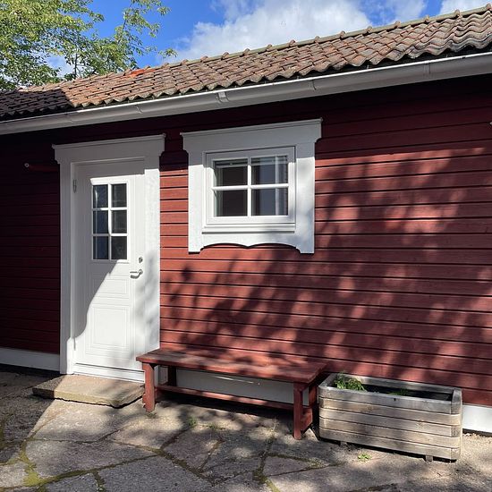 New apartment (2023) with lake view in a private house (2-room 25 sqm) A newly built and modern apartment in a separate building with a fantastic lake view is for rent. The apartment is fully furnished and ready to move in. The apartment is 25 sqm and consists of a kitchen and living room, bathroom with washing and drying machine, and a separate bedroom with bed and wardrobe. The bed is 160 cm wide. The kitchen is fully equipped with, among other things, a refrigerator, freezer, dishwasher, combined oven and microwave, and a stove. The ap...