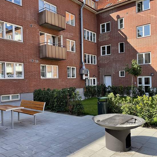 Ljus och välplanerad 2-rumslägenhet med parkettgolv och vitmålade väggar. Köket har vita luckor och grå bänkskiva, och i badrummet finns både tvättmaskin och torktumlare. På innergården finns trevliga uteplatser med bänkar och grillmöjligheter – perfekt för sommarens kvällar. Helsingborg är en attraktiv stad vid Öresunds smalaste del, med endast 3 750 meter till danska Helsingör. Här finns ett levande stadsliv, ett rikt kulturutbud, fina stränder och vackra grönområden som Ramlösa brunnspark och Stadsparken. I centrum hittar du mysiga cafée...