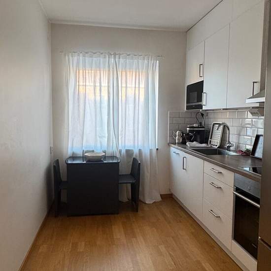 Renoverad gavellägenhet Trivsam gavellägenhet i ett område med stora grönområden mellan husen och direkt närhet till park med grillplatser samt promenad- och cykelvägar. Centrum14 nås på ca 10 minuters promenad med stort utbud av service och handel. Lägenheten är smakfullt renoverad och har balkong från vardagsrummet. Köket är utrustat med rostfria vitvaror och integrerad diskmaskin. Helkaklat badrum med duschväggar, golvvärme, spotlights samt tvättmaskin och torktumlare. Hall med klinker, säkerhetsdörr och förvaring. Sovrum med garderober o...