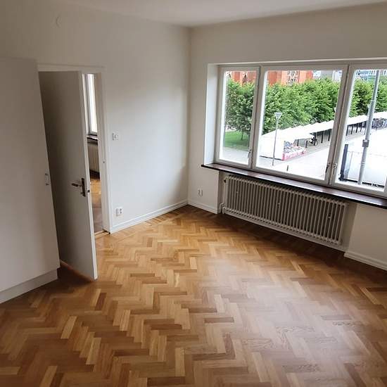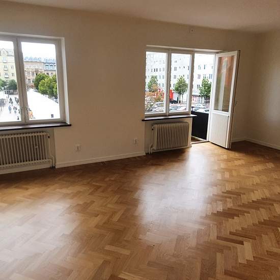 En stor härlig nyrenoverad lägenhet med två balkonger. Köket är ljust med plats för matgrupp, helt nya vitvaror och utgång till den stora balkongen i västerläge. Vardagsrummet rymmer både matsalsgrupp och soffgrupp. Här kommer ni även ut till den mindre balkongen som vetter ut mot torget. Stort sovrum med flera garderober. Bredvid det fina badrummet hittar ni en stor rymlig garderob. Fastigheten ligger mitt i Söder city. Närområdet består huvudsakligen av kontors-, butiks- och bostadshus. På Söder hittar du ett utbud av livsmedelsbutik...