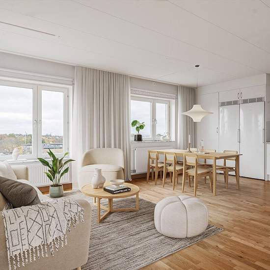 Bright and fresh one‑bedroom apartment on the ground floor with a lovely patio. A washing machine and tumble dryer are in the apartment to make everyday life easier. The stated rent is discounted by SEK 500 per month during the first year of the contract and is quoted at 2025 levels.