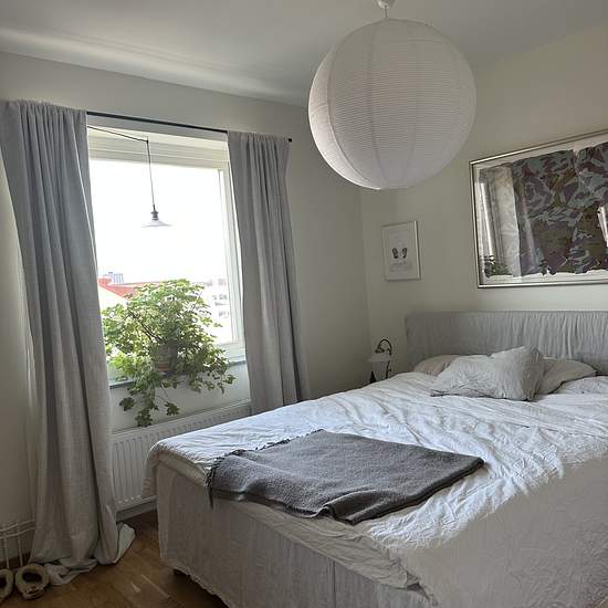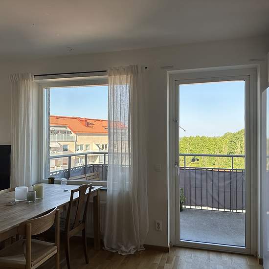 Two rooms and a kitchen with that little extra room that might become a walk-in closet or a home office—what will you use it for? Open-plan kitchen and living room with access to the apartment's patio. The kitchen is equipped with a fridge/freezer and dishwasher, and the fully tiled bathroom has a washing machine and tumble dryer, as well as a heated towel rail and glass shower walls. Adjacent to the bedroom you'll find the extra small room and the apartment's storage room of 2 m². The block consists of four building sections: two high-rise...