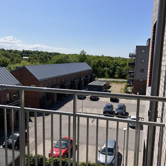 Two rooms and a kitchen with a little extra room that could perhaps become a walk-in closet or a study — what will you use it for? Open-plan kitchen and living room with access to the apartment's balcony. The kitchen is equipped with a fridge/freezer and a dishwasher, and the fully tiled bathroom has a washing machine and a tumble dryer, as well as a heated towel rail and glass shower walls. Adjacent to the bedroom you will find the extra small room and the apartment's storage room of 2 m². The block consists of four building sections: two ...
