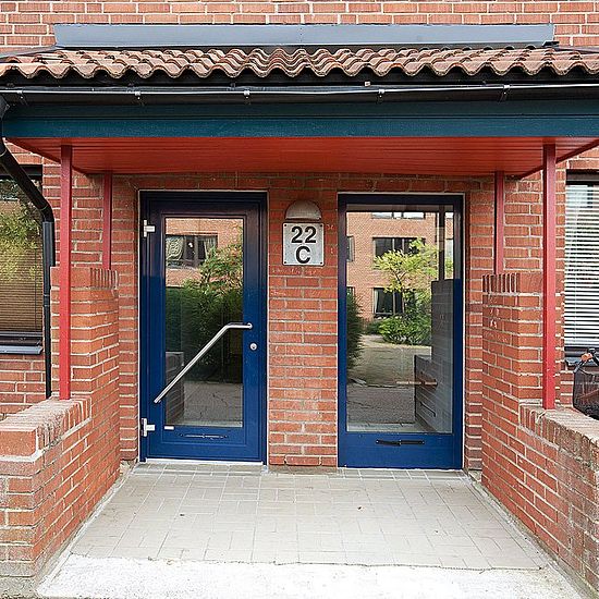Spacious and welcoming entrance hall with storage in closets. Balcony off the bedroom, living room with space for socializing with family and friends. Separate kitchen with room for a dining area and lovely dinners. Apartment storage unit and bathroom with access from the hall. The area consists of 12 brick buildings. Between the buildings are leafy inner courtyards with playgrounds and an allotment area. Bicycle storage, waste/recycling rooms and laundry rooms are located in six courtyard buildings in the area. All apartments have a balco...