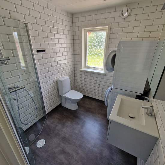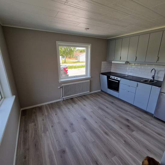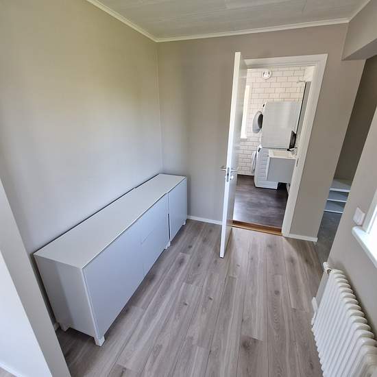 Freshly renovated, modern apartment with a well-designed layout. Stylish kitchen with plenty of storage and generous work surfaces. Bathroom with a shower, washing machine and tumble dryer. Bright rooms with large windows and beautiful natural light. There is also a practical loft that can be used as an extra sleeping space or for storage. Located in a quiet area close to nature and local amenities.