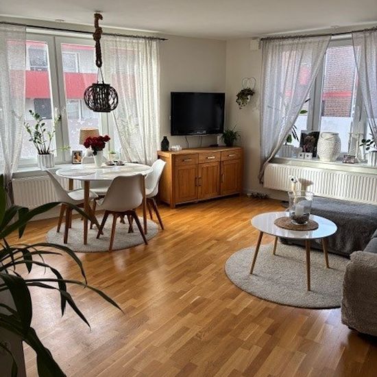 Welcome to this bright and pleasant ground floor apartment, located in one of our older buildings in the heart of central Höganäs. Here you have good natural light, a nice space in the shared living room, and a modern kitchen. Fully tiled bathroom with shower. Parquet floors and white painted walls in all rooms as well as tile floors in the hallway. Nice shared outdoor areas for barbecuing and sunny days. THIS APARTMENT INCLUDES: Heating and hot water Open fiber network via Telia Telia Cable TV basic package THE AREA Lantmannagatan is ...