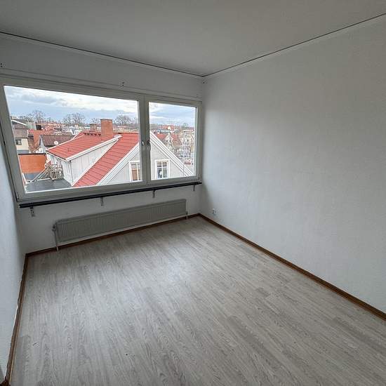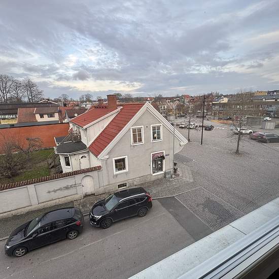 Pleasant, bright through apartment that faces the street, a terrace and a leafy inner courtyard, right in the heart of charming Hörby and only a few minutes from all amenities, shopping and transport. The building, built in 1972, is continuously renovated with new appliances, painting, flooring, etc.