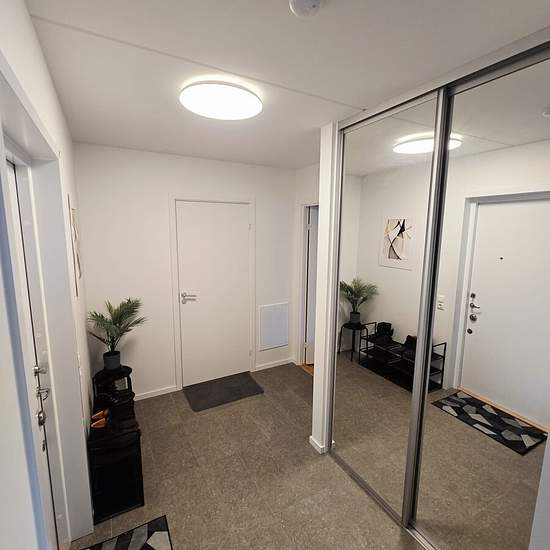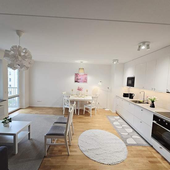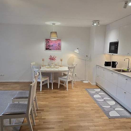 Nyproducerad (dec 2023) 2 rum på 55 kvm mitt i Barkarbystaden (JM Horisont Barkarby Norra) . Företrädesvis långtidshyreskontrakt. Lägenheten ligger högt upp på våning 4 (av 5). Lägenheten är möblerad. Goda förbindelser till staden via buss och tåg (buss 175 går till Barkarby station och Akalla station). Busshållplatsen Sveatorget ligger 100 meter från lägenheten. Kvarteret Horisont Barkarby Norra har en solig och grönskande innergård med gott om planteringar, sittytor och sandlåda för de yngre barnen. Hyran är täcker värme, varmvatten, kal...