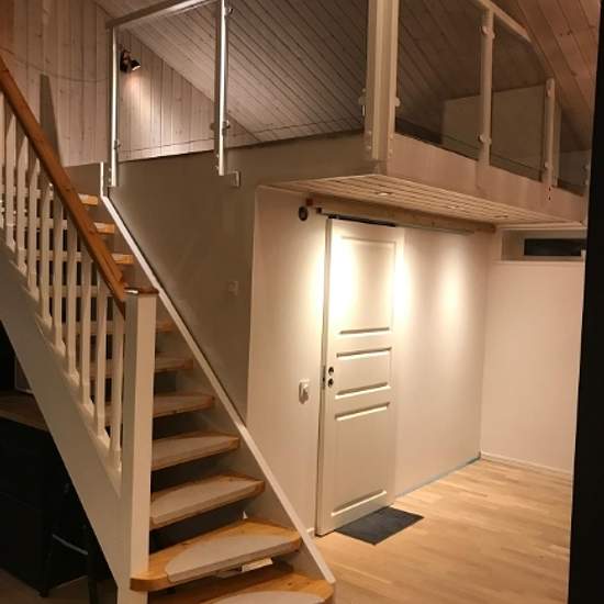 Modern, pleasant and spacious split-level apartment with a south-facing balcony, located in a calm and welcoming area. Only 50 m to the bus stop with connections to Barkarby and Jakobsberg commuter train stations as well as Vällingby Centre. Walking distance to Barkarby station. Close to preschools and other schools.