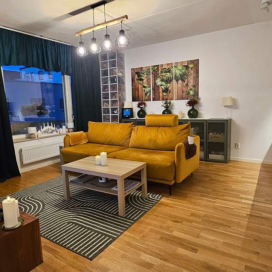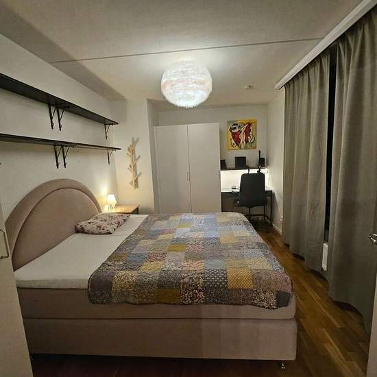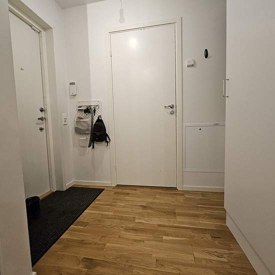 Fin och mycket välskött 2:a om 40 kvm, högst upp i huset (våning 5/5) i lugnt område i Jakobsberg. Nyproduktion från 2020 med öppna ytor, stort ljusinsläpp och stor balkong. Ett hem som behöver upplevas på plats. Fakta Hyra: 11 900 kr/mån Internet: 250 kr/mån Garage: 1 300 kr/mån (valfritt, annars gratis gatuparkering 3 h) TV: Ingår (alla kanaler) Hiss, diskmaskin, tvättmaskin/torktumlare Förråd i källaren, säkerhetsdörr Öppen planlösning Stort sovrum med tre garderober, vardagsrum och kök i öppen planlösning, hall med garderob samt stor b...