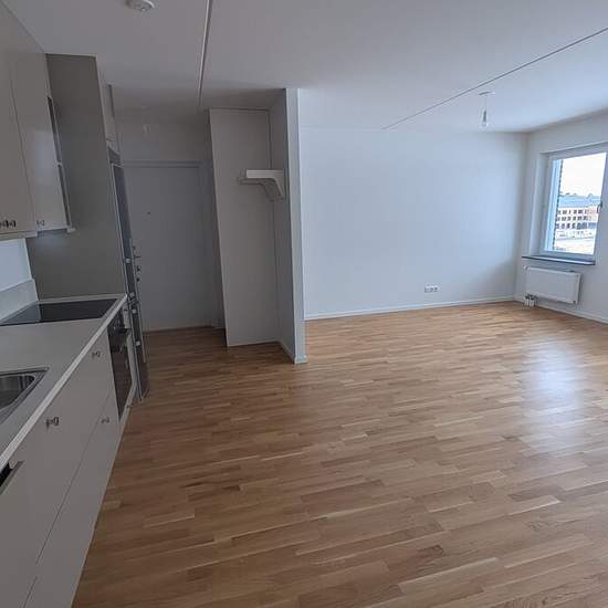 Welcome to a modern and very bright one-bedroom apartment of 46 sqm in the heart of Barkarbystaden. The unit is an owner-occupied apartment (ägarlägenhet), which means we can offer a very secure and guaranteed long-term rental without requiring time-limited permissions from a housing cooperative. The apartment features an open and social layout with continuous oak parquet flooring, tasteful material choices and fantastic natural light from large windows. Living room & Balcony: Airy living room with access to a spacious balcony on the 5th f...