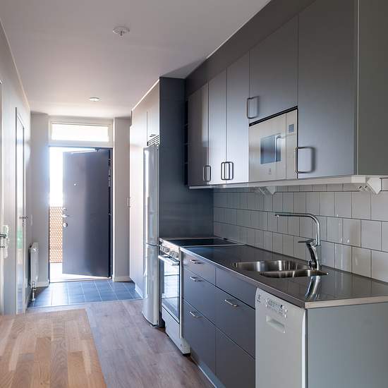 The buildings in HSB Parketten range between two and eight storeys. Windows and balconies are positioned so that the buildings are distinguished and gain their own identity. The property was completed in 2024. We have placed great emphasis on creating bright, pleasant floor plans with views toward the water and good daylight in the apartments, while traffic lights from Kämpeavenyn are kept out. Whether you live in a large or small apartment, the kitchen and living room are open to each other, which gives an airy and light impression. Virtual...